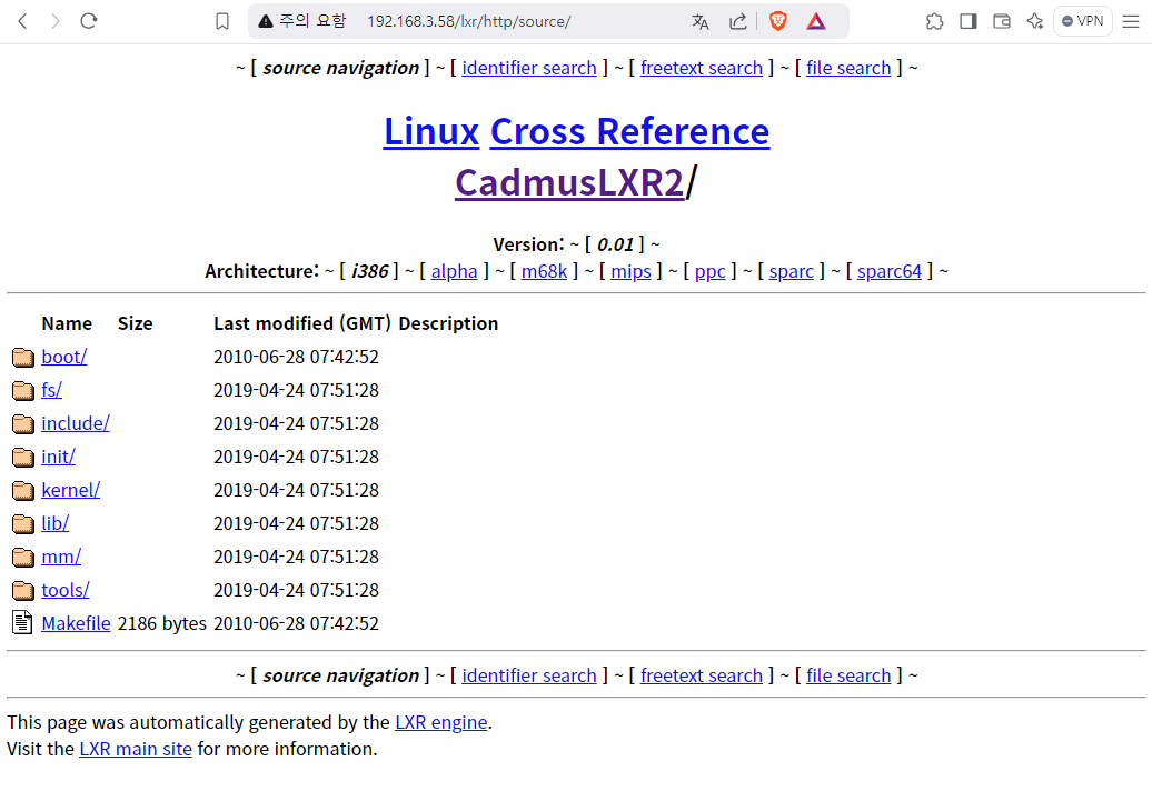 현재 LXR Main Site는 https://lxr.linux.no/ 에서 참고 가능하며, 나는 현재 버전 보다는 예전 버전으로 간단하게 구축 사용중이다.